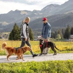 Het rode Y-tuigje is gemaakt van robuust polyester en is bestand tegen een stootje. In de zomer kan het zelfs een aangenaam verkoelend effect hebben als je het in koud water dompelt voordat je het omdoet. Een gewatteerde handgreep op de rug geeft je de mogelijkheid om jouw hond dicht bij je te houden indien nodig. De gespbescherming tegen per ongeluk openen en de reflecterende zoom dragen ook bij aan meer veiligheid.