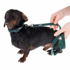 Traploos verstelbare halsband voor honden, in elegante fluwelen look, met grote D-ring, weerbestendig en robuust, leuke details, met drukknoop, gemaakt van polyester en nylon, kleur: groen.