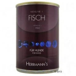 Herrmann’s Menu voor alle honden, met vlees of vis, afkomstig van gecontroleerde biologische teelt, fok en landbouw, makkelijk verteerbare gezonde groenten en koolhydraten.