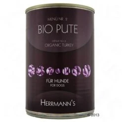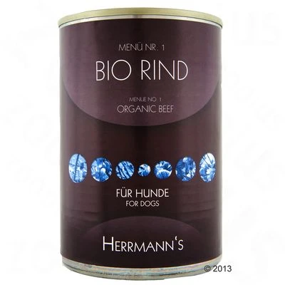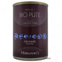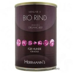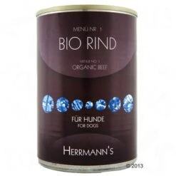 Herrmann’s Hondenvoer Menu is een bijzonder hoogwaardig compleetvoer voor honden – met gecertificeerde biokwaliteit. Het bio-vlees dat gecontroleerd biologisch gefokt wordt, komt direct van de boerderij.Het bio-vlees wordt op een diervriendelijke manier gefokt en geslacht. Herrmann’s Bio-Menu met licht verteerbare koolhydraten en extra groenten is lekker compleetvoer voor elke hond – kant en klaar uit blik.