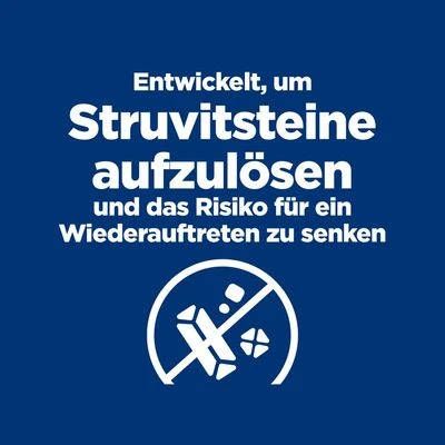 - Compleetvoer om herhaling van struvietstenen te verminderen, struvietstenen op te lossen en de vorming van oxaalstenen bij volwassen honden te verminderen