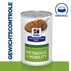 Hill’s Prescription Diet Metabolic + Mobility is een dieet natvoer speciaal ontwikkeld voor honden met overgewicht en ter bevordering van de gewrichtsstofwisseling bij artrose. Uitsluitend samengesteld uit hoogwaardige ingrediënten die jouw hond verzadigd en tevreden houden tussen de maaltijden door. Tegelijkertijd heeft deze dieetvoeding een laag energiegehalte, wat de gewichtsbeheersing vergemakkelijkt. Het heeft een hoog gehalte aan omega-3-vetzuren en EPA, evenals voldoende vitamine E.