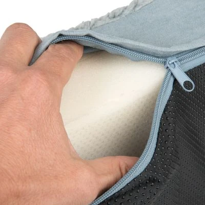 Het handige hengsel aan de zijkant van het hondenbed zorgt voor makkelijk verplaatsen van de matras. Het ligoppervlak is met zachte teddy-vacht bekleed, dat schaapsvacht imiteert, maar wordt gekenmerkt door betere onderhoudseigenschappen. De makkelijk schoon te houden bekleding van het hondenbed kan eenvoudig van de hoogwaardige matras worden verwijderd en kan separaat op 40°C in de wasmachine worden gereinigd. De onderkant is met antislipnoppen voorzien, die de hondenmatras ook op gladde vloeren stabiliteit biedt.