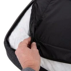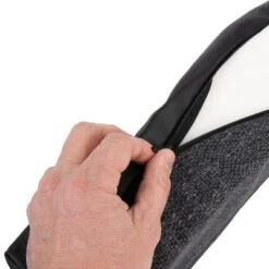 Comfortabel hondenbed met kunstleren handvat. Tweezijdig kussen (stof & kunstleer). Bekleding met ritssluiting. Dikke wattering. Antislip nopjes. Kleur: zwart/grijs.