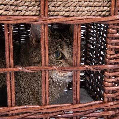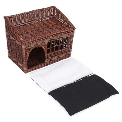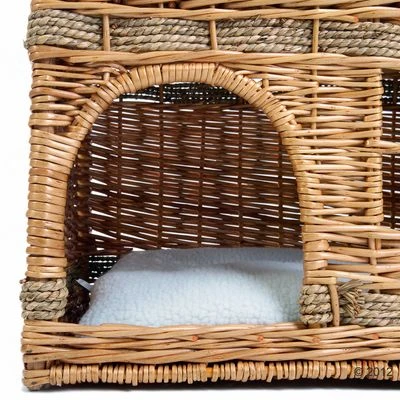 Dit extravagante en hoogwaardig gevlochten hondenhuis met schattige Pueblo-look heeft twee niveaus: de benedenetage heeft een knuffelhol met raampje om achter te verstoppen en alles te bekijken. De bovenetage leent zich uitstekend om lekker te knuffelen en te dutten. Beide niveaus hebben een bijpassend kussen.