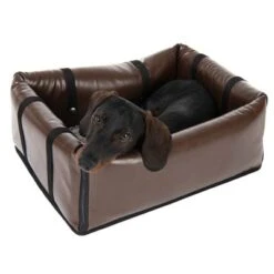 Multifunctioneel bed voor honden en katten. Als transportbox, bank, bed of ligkussen. Eenvoudig gebruik, tweezijdig kussen met leren en pluchen kant, onderhoudsvriendelijk & van hoogwaardig kunstleer.