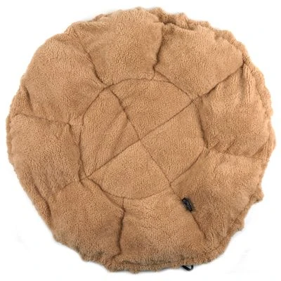 Een wonderlijke transformatie – u kunt het trekkoord gebruiken om het ronde, gewatteerde kussen om te toveren in een comfortabele mand. Kleur: beige en beige met pootjes motief