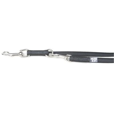 Dankzij de robuuste, grote karabijnhaken en de drie O-ringen kan de lijn 3-voudig worden versteld – van de gang “bij voet” tot aan een loopradius van 2,2 meter aan toe. Ook het voeren van twee honden is met de duurzame V-lijn geen probleem. Haar hoge mechanische belastbaarheid is door het testinstituut INNOBA TEXT getest en bevestigd. Zoals alle originele producten van het merk Julius K9 is de hondenlijn zeer hoogwaardig verwerkt en combineert comfort met esthetische wensen.