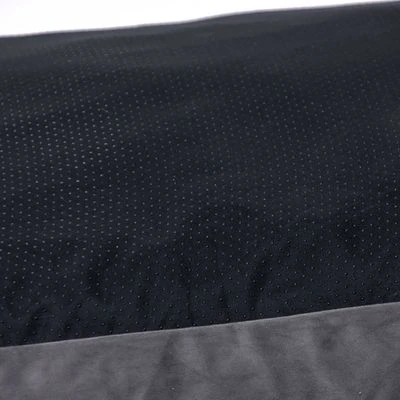 Fijn ligkussen met hoge rand voor honden. Met rits. Anti-slip bodem. Subtiel glanzend fluwelen oppervlak met doorgestikt patroon. Hoes afneembaar & wasbaar in machine. Kleur: donkergrijs.