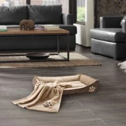 De comfortabele vorm en de zachte microvezel imitatievacht aan de binnenkant nodigen uw hond uit erin te slapen. De rechthoekige hondenmand met pootapplicatie uit de Basic-collectie van zooplus heeft een tijdloos design. Door de decente kleuren beige en bruin past de mand harmonische wijze in ieder interieur.
