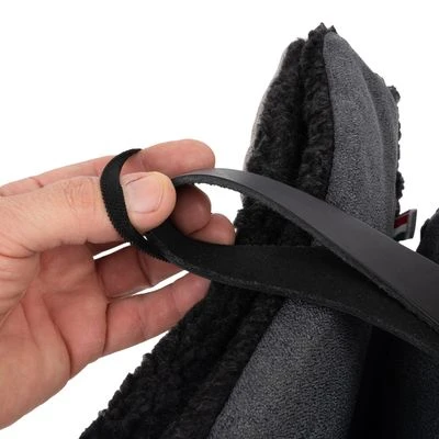 Deze mat is een triomf van bruikbaarheid: hij kan gemakkelijk worden opgevouwen om hem mee te nemen zonder al te veel ruimte in te nemen, en hij is uitgerust met een lederen handvat, ideaal voor onderweg en op reis. De antislip onderkant beschermt ook tegen de kou, tegen nattigheid en vuil, terwijl het zachte pluche oppervlak met schapenvacht-effect perfect is om je trouwe viervoeter te laten ontspannen.