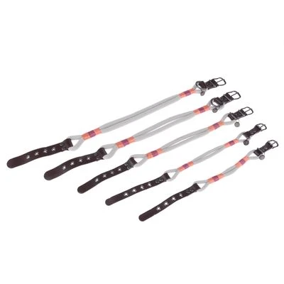 De riem heeft 2 karabijnhaken en 3 ringen om de lengte aan te passen.