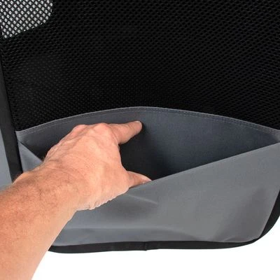 Het hoogwaardige materiaal is bijzonder stevig en afwasbaar. De bodem kan middels de ritssluiting makkelijk worden vastgezet en weer verwijderd. Voor het bevestigen van een drinkfles is een speciale houder en opening aangebracht. U kunt deze te allen tijde van buitenaf bereiken.