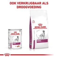 Chornische nierinsufficiëntie (CNI) komt bij honden vaak voor en gaat meestal gepaard met anorexia (verlies van hongergevoel). Het voeren van een speciale hondenvoeding is daarom bijzonder belangrijk. Royal Canin Renal – Veterinary Diet is een dieetnatvoer, dat speciaal aan de voedingsbehoeften van honden met ziekten van de nieren is aangepast. De receptuur kan de nierfunctie ondersteunen en bevat een speciaal antioxidantencomplex evenals essentieel EPA en DHA bij een laag fosforaandeel. Een aangepast eiwitgehalte helpt overbelasting van de nieren tegen te gaan. De receptuur van Royal Canin – Veterinary natvoer is bovendien alkaliserend, wat voor balans in de stofwisseling zorgt. Een geselecteerd smaakprofiel houdt rekening met de speciale voorkeuren van de hond en bevordert de acceptatie van het voer.