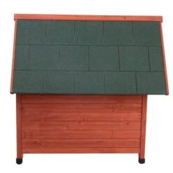 Duurzaam, oersterk en extra groot hondenhok met puntdak van voorgeölied hout en verstevigde dakbitumen inclusief kunststof deur.Â