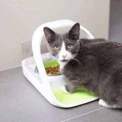 Voerautomaat voor katten, gestuurd door microchip. In de applicatie zijn gegevens op te vragen, geïntegreerde weegschaal weegt vanaf 1 gram. Met sluiting van rubber en geschikt voor droog- & natvoer.