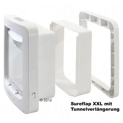 Extra groot microchip huisdierluik met dubbele vergrendeling en programmeerbare in- en uitgangsversperring. Het luik heeft 4 sluitmogelijkheden en kan worden geopend met microchip & halsbandsleutel.