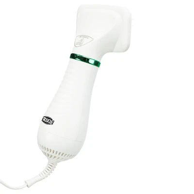 De Trixie warmeluchtborstel heeft twee warmtestanden en wordt aangedreven door een soepele en stille motor. De borstelkop is voorzien van kunststof borstelharen en nopjes, die zorgen voor een aangenaam gevoel op de huid en vacht van uw hond. Een praktisch hulpje dat een ongekamde vacht voorkomt en in geen enkel hondenhuishouden mag ontbreken!