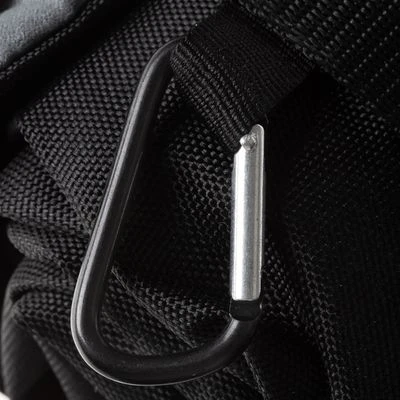 • Karabijnhaak: om vast te maken aan een rugzak of riem