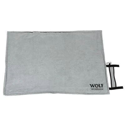 Het Reis-Hondenkussen is ideaal voor onderweg en voor diverse buitenactiviteiten. Het is klein op te rollen en heeft een handvat wat het eenvoudig maakt om op te bergen of te transporteren. Zoals de andere ‘Wolf of Wilderness’ producten scoort het hondenkussen met een aantrekkelijk design. Het heeft een stijlvol geborduurd ‘Wolf of Wilderness’-logo en heeft een zwart met grijze kleur.